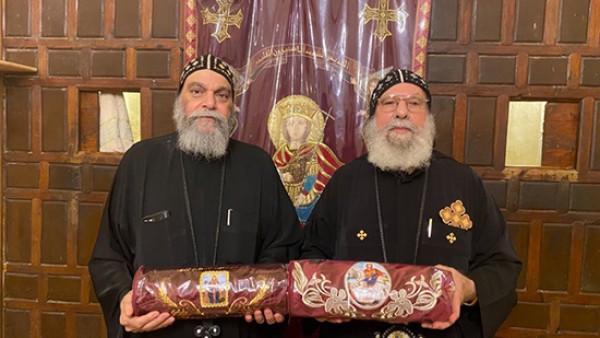الأنبا بيشوي يستقبل رفات الشهيد أبسخيرون القليني والقديس الأنبا صرابامون الأسقف