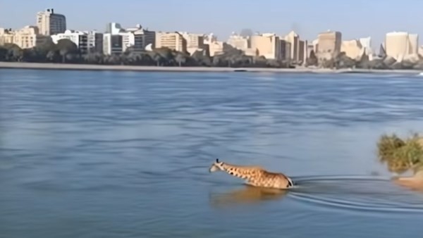 زرافة تستحم في نهر النيل؟.. الحقيقة الكاملة وراء الفيديو المنتشر