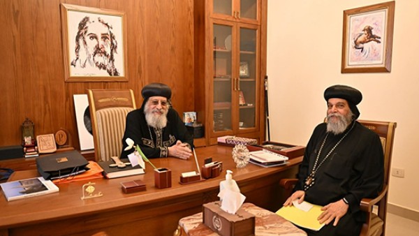 البابا تواضروس يستقبل الأنبا بيشوي أسقف أسوان بالمقر البابوي